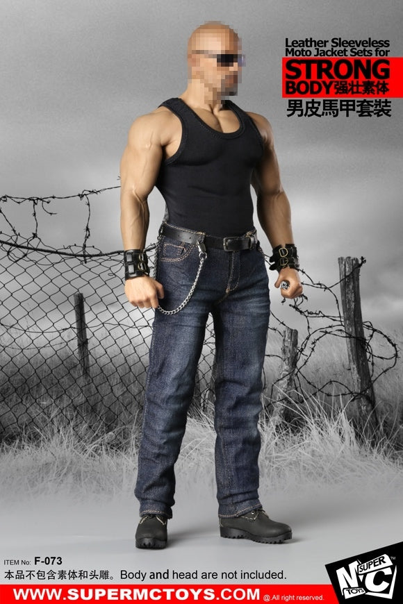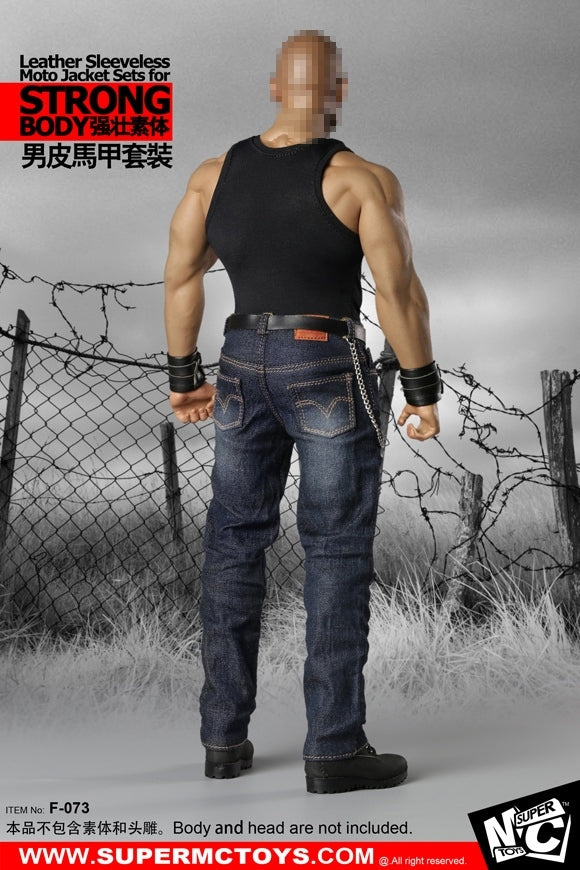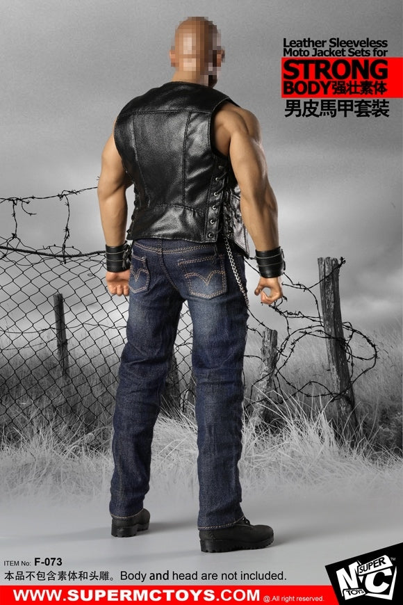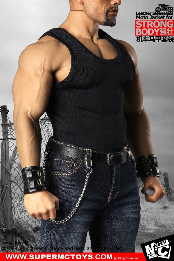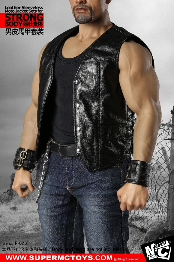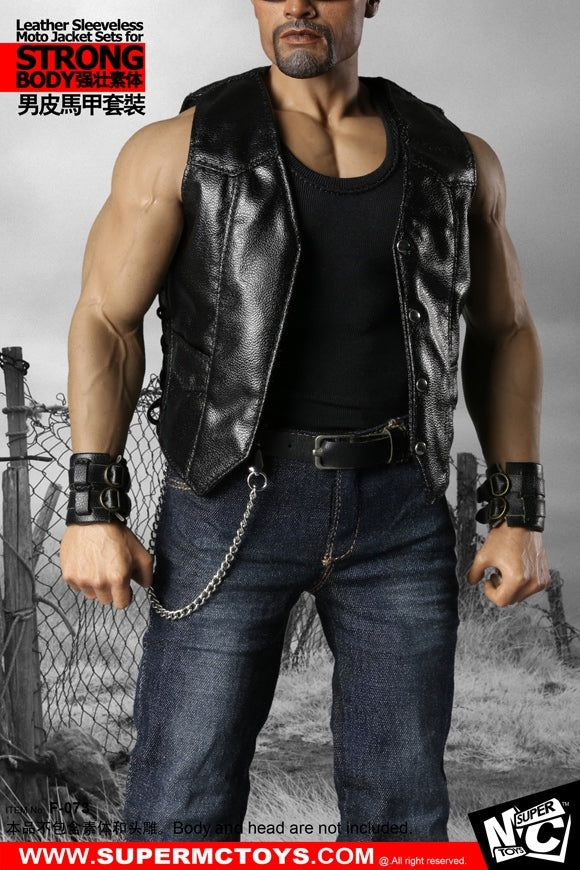 1/6 Male Leather Sleeveless Moto Jacket Set for Massive Body