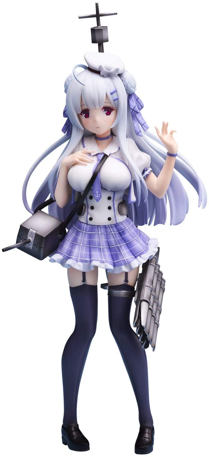 This charming figure of Cygnet from Azur Lane by Union Creative perfectly captures her shy and endearing personality. Dressed in a cute lilac and white school uniform, Cygnet stands with a slight, demure pose, her expression reflecting her gentle nature. The soft details in her flowing silver hair, accented with delicate bows, add to her overall innocence. The small ship parts attached to her outfit, including the turrets and anchor, subtly remind us of her naval origins without overwhelming her delicate appearance. Her high socks and school shoes complete the look, making this figure a sweet and delightful addition to any collection, especially for fans of Azur Lane's more reserved characters.