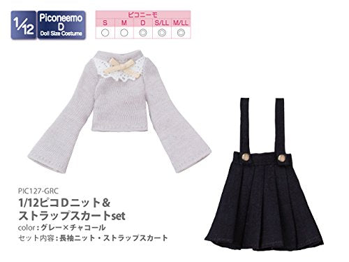Doll Clothes - Picconeemo Costume - Knit & Strap Skirt Set - 1/12 - Gray x Charcoal (Azone)