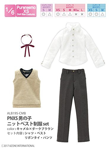 Doll Clothes - Pureneemo Original Costume - PureNeemo XS Size Costume - Boys Knit Vest School Uniform Set - 1/6 - Camel x Dark Brown (Azone)