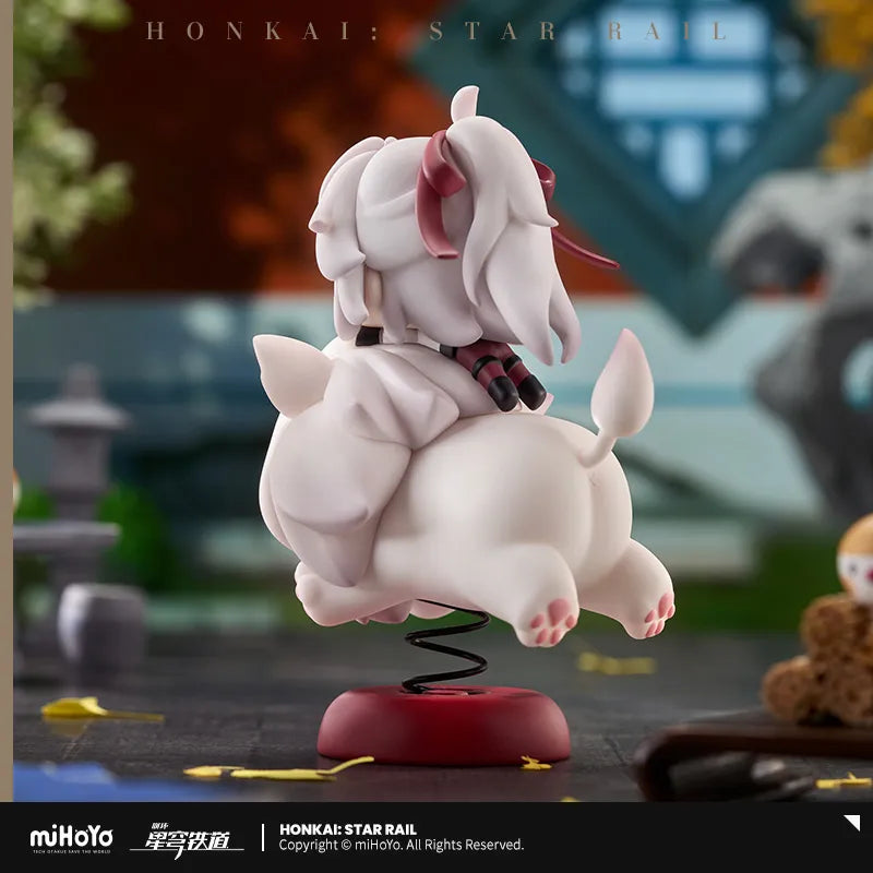 Ever wondered what happens when cuteness meets action? Meet the delightful "Happy Shake" figure from Honkai: Star Rail featuring Jing Yuan and his adorable companion, Mimi! This charming piece showcases Jing Yuan with his signature playful smirk, perched atop a whimsically designed bobble-headed Mimi. With her big, blue eyes and fluffy white fur, Mimi adds an irresistible touch of charm and energy to your display. Crafted with attention to detail, every tuft of hair and facial expression radiates personality, making it hard to resist a smile. The playful spring base lets Mimi bounce with joy, capturing the spirit of adventure in the game. This figure isn’t just a collectible; it’s a little slice of happiness that every fan would love to have!