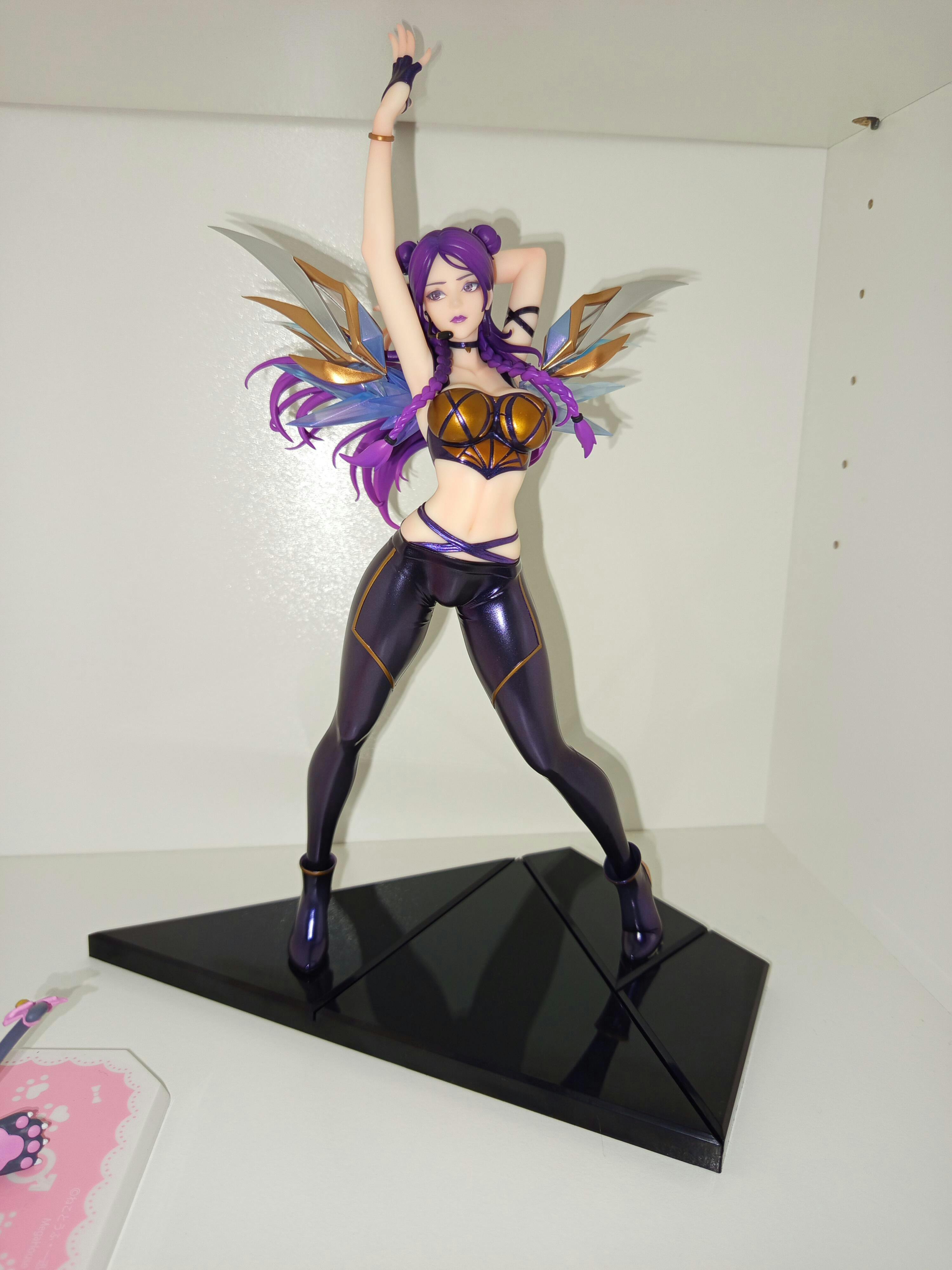 Bring the electrifying energy of "League of Legends" to your collection with this 1/7 scale figure of Kai'Sa from the K/DA pop star lineup, presented by Apex Innovation. This stunning figure showcases Kai'Sa in a dynamic pose, ready to dazzle her fans with her performance. Dressed in a sleek, form-fitting outfit with metallic gold and purple accents, she exudes confidence and charisma. Her vibrant purple hair, styled in braids, flows beautifully, adding to her captivating presence. The detailed wings and futuristic design elements highlight her unique style. This Kai'Sa figure is a must-have for any "League of Legends" fan, capturing the spirit and glamour of the K/DA sensation.