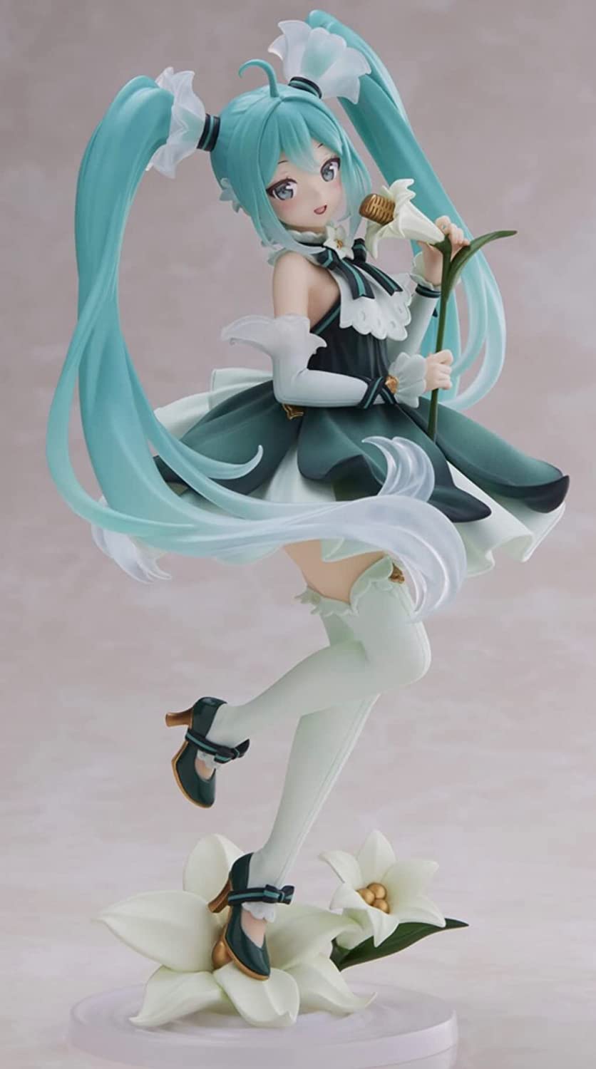 Is your heart ready to be serenaded by the ethereal charm of Hatsune Miku? This stunning Taito Kuji figure captures the beloved Vocaloid sensation in a moment of pure musical magic! Adorned in a playful yet elegant outfit of deep emerald and soft white, she appears to dance upon a lush bed of lilies, perfectly blending nature and melody. Her vibrant turquoise pigtails swirl around her like a soothing melody, while her sweet expression invites you to join in on the fun. With intricate detailing and a playful pose that radiates energy, this figure is a must-have for any Miku fan wanting to add a touch of whimsy to their collection! Don't let her slip away— she’s sure to brighten up any space with her enchanting presence!
