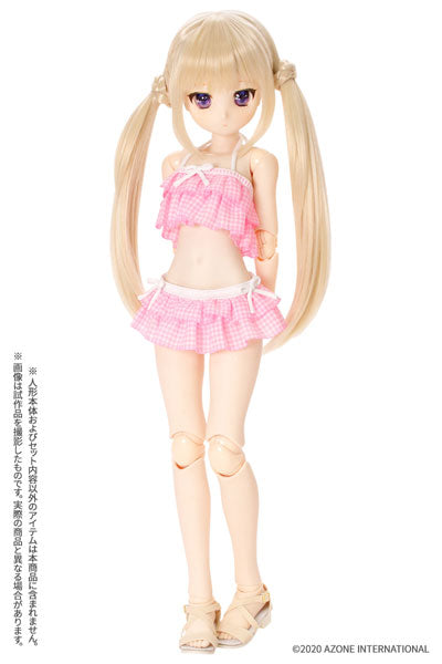 1/3 Scale 45 Gingham Check Frill Bikini Set Pink Checker x White Ribbon (DOLL ACCESSORY)