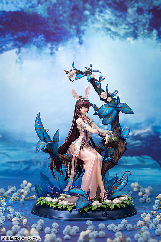 Introducing the mesmerizing "Douluo Continent - Komai - Lifetime Guardian Version" by Myethos! This exquisite figure captures the serene elegance of Komai, seated gracefully among vibrant blue and green foliage. Her delicate pink gown, adorned with intricate silver detailing, flows elegantly as she rests on the enchanted tree. The figure's standout feature is Komai's enchanting rabbit ears and floral headpiece, adding a touch of whimsy to her ethereal presence. The dynamic composition of the branches and flowers enhances the figure’s sense of enchantment, making it a captivating centerpiece for any collection. Embrace the allure of this guardian spirit with this stunning figure.