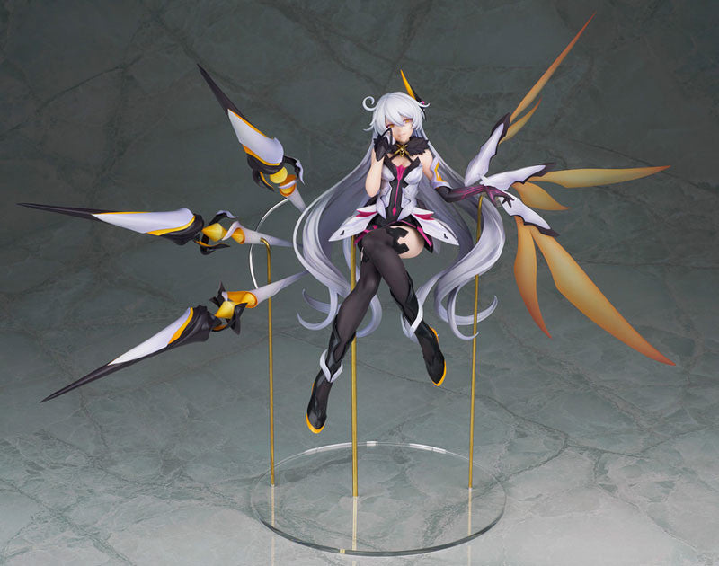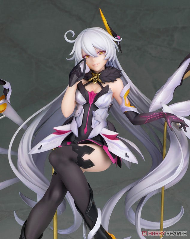 Prepare to be mesmerized by the stunning figure of Kiana Kaslana from "Houkai 3rd"! This exquisite 1/8 scale figure captures Kiana in all her glory, exuding fierce elegance and power. With her ethereal white hair flowing gracefully and those striking wings extending behind her, she transforms any display into a captivating spectacle. The intricate detailing of her outfit, with hints of pink and bold gold accents, brings her character to life. Her confident pose conveys both strength and grace, while the sophisticated design of her weaponry adds an edge that's impossible to ignore. This figure is a true gem for any fan looking to celebrate Kiana’s remarkable allure!