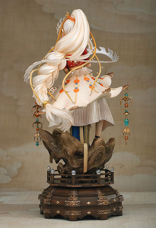 Introducing the breathtaking 1/7 scale Pearl Pillar of the Buddhist Shrine figure from National Treasure by Myethos! This stunning figure embodies the essence of elegance and serenity, showcasing an intricate design inspired by traditional Buddhist art. Perched gracefully on a beautifully sculpted base, the figure features exquisite details from her flowing white gown adorned with delicate patterns to her ornate accessories that include intricate golden ornaments and ethereal ribbons. Her serene expression and the serene, intricate background elements like the carved wood and hanging lanterns create a harmonious scene. This figure is a masterpiece, perfect for collectors who appreciate art and beauty, bringing a touch of divine tranquility to any collection.