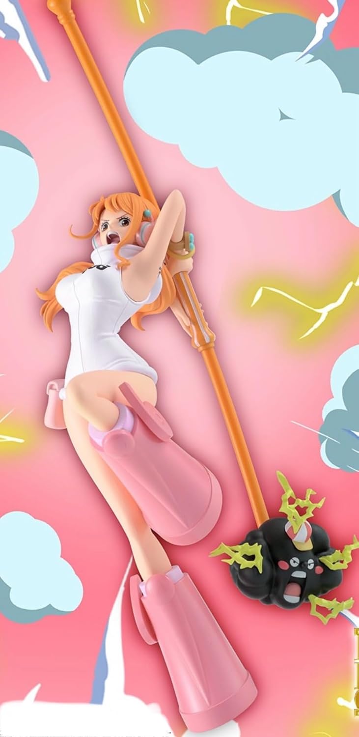 Meet Nami, soaring through the skies with her electrifying companion Zeus! This spellbinding figure captures our beloved navigator just as she's ready to unleash her stormy powers. With her fierce expression and whimsical pose, she exudes an energy that’s downright contagious! The soft pastel colors harmoniously contrast with the boldness of Zeus, making this piece a burst of charm and exclamation. Adorn your space with this delightful figure and let Nami be the weather goddess in your collection, bringing adventure and whimsy to every onlooker! Don’t let this cutie get swept away!