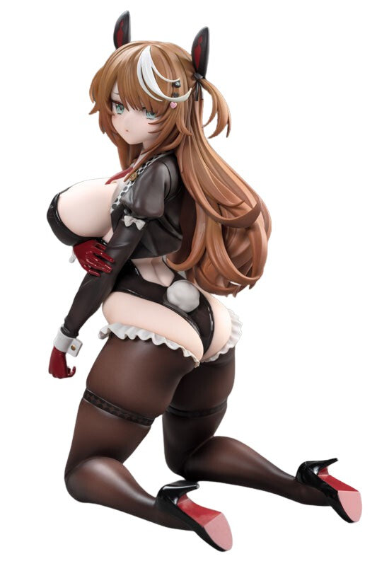 Embrace the enchanting allure of the Original Character Mochi Bunny Girl with this stunning 1/7 scale DX version figure by Omaha. Mochi is depicted in a seductive and playful pose, kneeling with a confident expression that exudes charm and elegance. Her detailed bunny outfit features a mix of black and white, adorned with frills and a cute bunny tail, highlighting her captivating figure. The intricate sculpting of her long flowing hair, bunny ears, and expressive eyes add depth to her character. The figure showcases meticulous craftsmanship, from the delicate stockings to the glossy high heels, creating a striking contrast. This Mochi Bunny Girl figure is a must-have for collectors, combining cuteness and sensuality in a beautifully crafted display that radiates both elegance and allure.