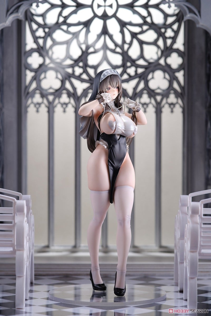 Feast your eyes on the sultry Cosplay Sister-san figure! With curves that could make even the toughest critic swoon, this figure masterfully blends a cheeky spin on classic attire. Dressed in a gleaming black and white ensemble, she is a tantalizing vision, complete with sheer stockings and delicate accents, reminiscent of a spirited yet refined character from an enchanting realm. Her captivating expression draws you in, whispering secrets of remote worlds and daring tales. Transform your collection with this enchanting piece, where seduction and charm collide in a way only a Cosplay Sister can!