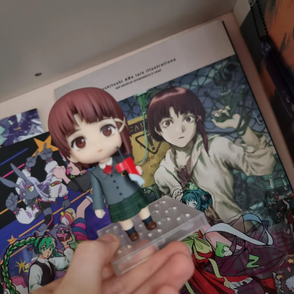 She is adorable!!!! I really like her face, and the background glitch prop, however her face plates are little limited, and very little accessories and posing available (though i dont mind too much as Lain isnt overly expressive anyways!) Her phone device doesn't stay in her hand well, had to use a bit of bluetack but otherwise so happy with her!!