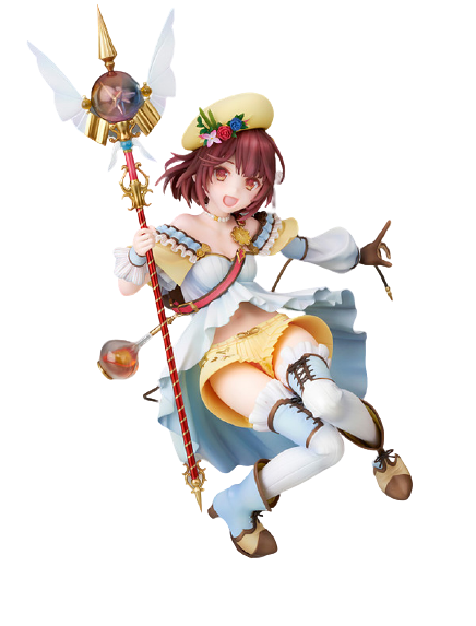 This stunning 1/7 scale figure of Sophie Neuenmuller from "Atelier Sophie: The Alchemist of the Mysterious Book" by Alter captures the character's vibrant energy and adventurous spirit. Sophie is depicted mid-leap, brandishing her ornate staff with a joyful expression. Her outfit is a delightful mix of pastel colors— a cream bodice with ruffled sleeves, flowing skirt, and thigh-high white stockings. The yellow frills of her underskirt and the flowers adorning her hat add a touch of whimsy. Every detail, from the intricate design of her staff to the playful, dynamic pose, showcases the figure's craftsmanship. This Sophie Neuenmuller figure is a must-have for fans, beautifully embodying her cheerful and spirited nature.