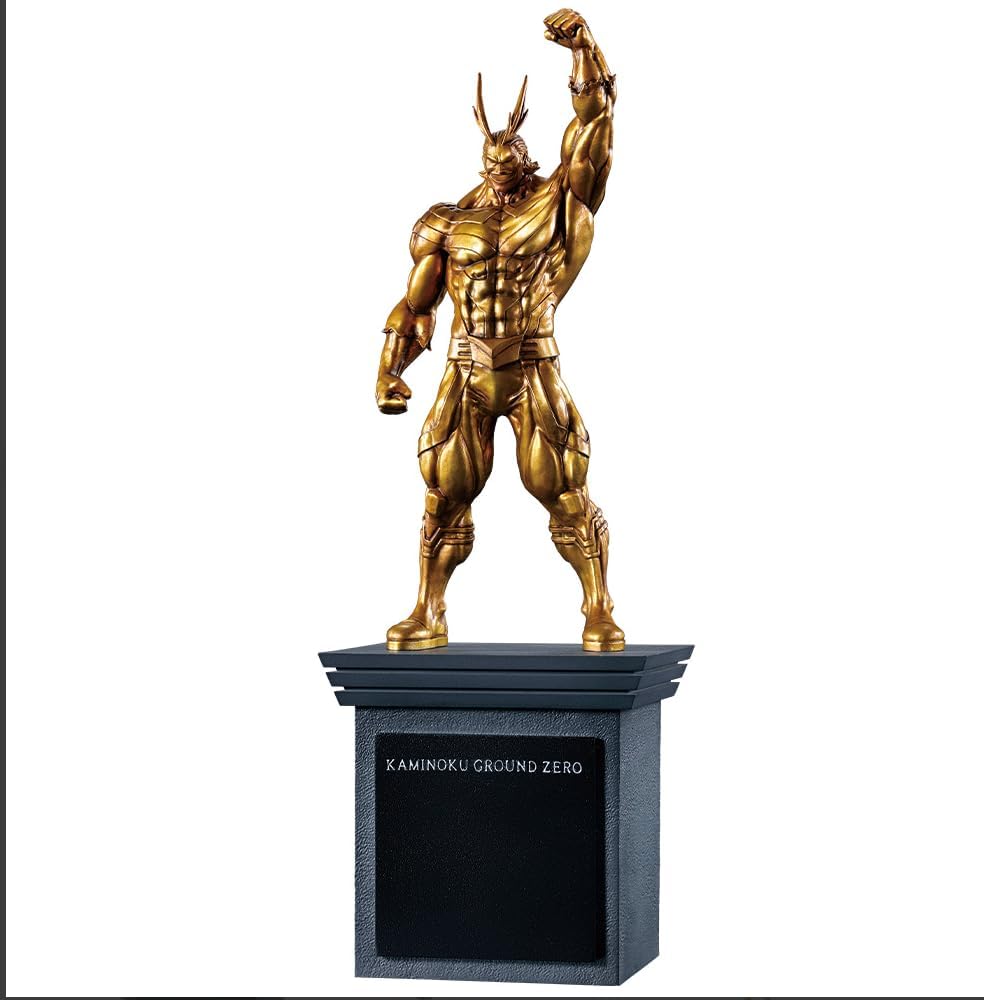 Unleash the spirit of justice with this dazzling All Might figure from "Boku no Hero Academia," sculpted in a striking golden finish that'll give any shelf a heroic glow! Standing triumphantly on an elegant base that reads "KAMINDOKU GROUND ZERO," this figure captures All Might's incredible power and charisma, making it an eye-catching centerpiece. From his spiky hair to his muscular physique, every detail invites admiration and inspires dreams of heroism. Whether you're a seasoned collector or just starting your journey, this All Might figure is the ultimate way to showcase your love for heroism and determination!