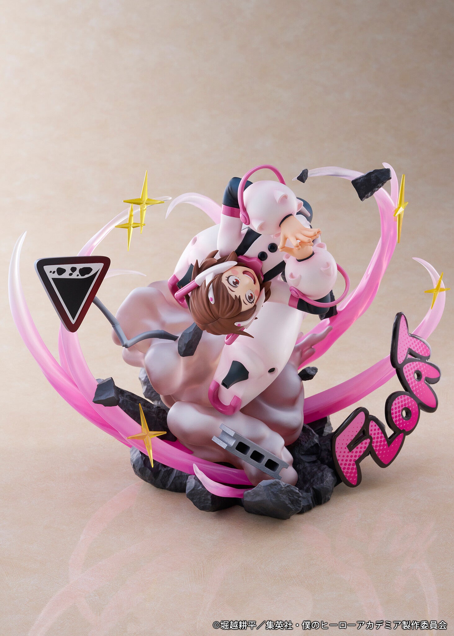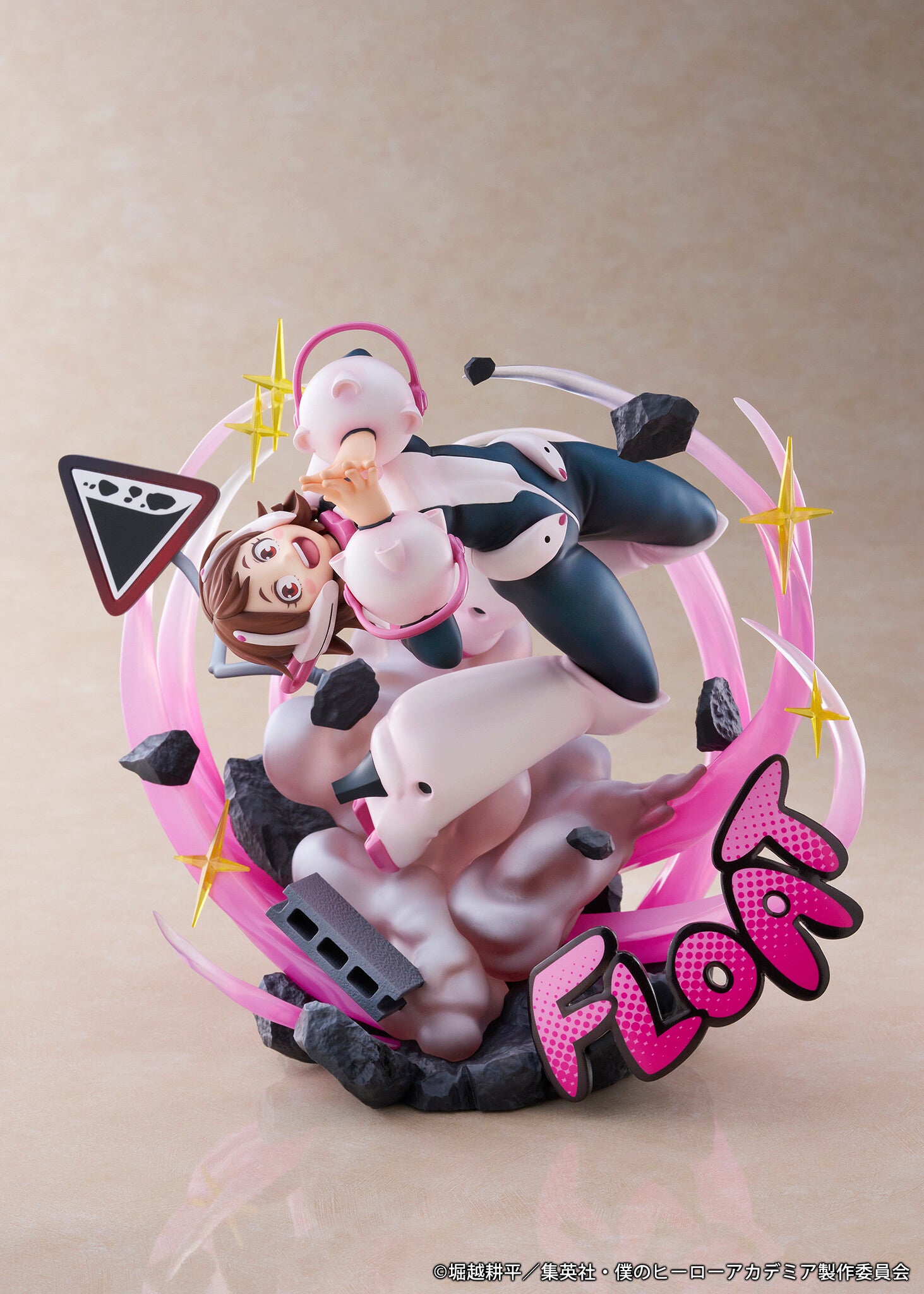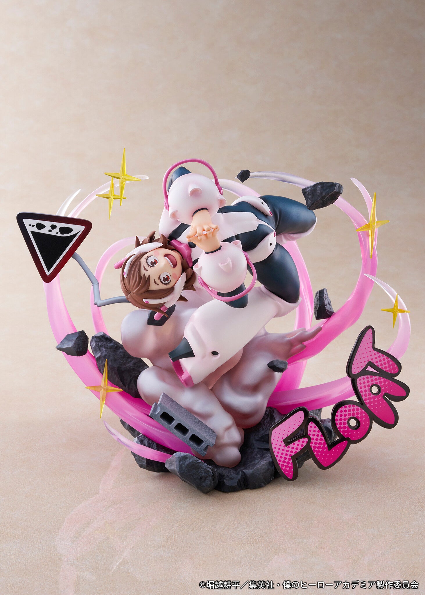 Ever wondered what it would be like to float in a world where gravity has no hold? Meet Uraraka Ochaco, the adorable gravity-defying heroine from Boku no Hero Academia, captured in her dynamic "Uravity" form! This stunning 1/7 scale figure showcases her in an electrifying pose, surrounded by whimsical swirls of pink, complemented by sparkling stars and intriguing debris that gives an energetic vibe. This figure is an invitation to embrace your quirks and let your dreams reach new heights! Ready to take your collection to the next level?