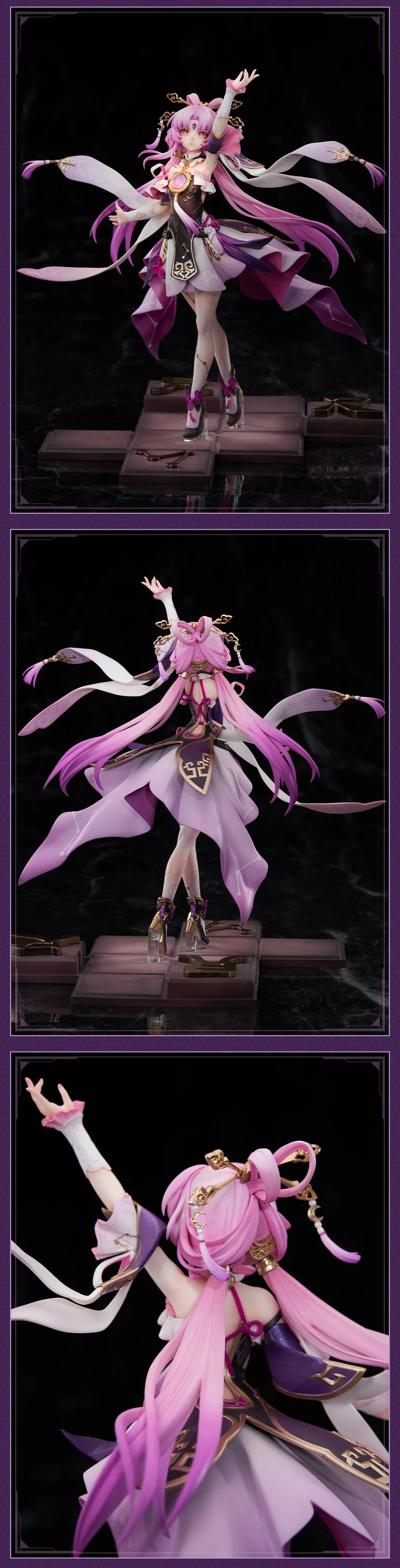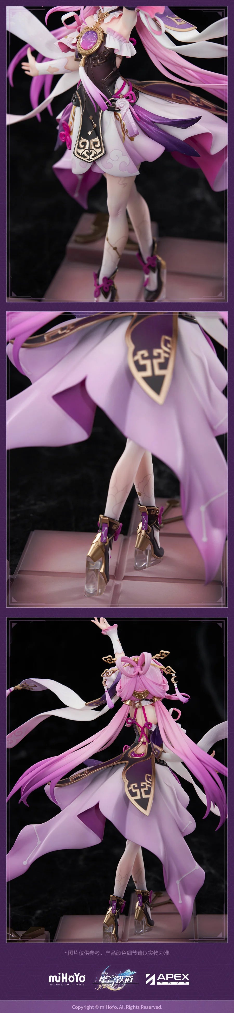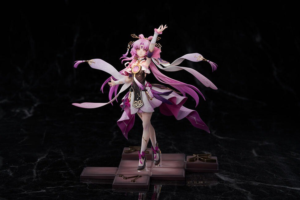 Step into the mystical world of Honkai: Star Rail with this breathtaking 1/7 scale figure of Fu Xuan by Apex Innovation. Fu Xuan stands gracefully, her flowing pink hair and elaborate attire capturing the elegance and power of her character. The intricate details of her outfit, adorned with gold accents and a blend of purple hues, highlight her regal and enigmatic presence. Her dynamic pose, with outstretched arms and fluttering ribbons, evokes a sense of movement and magic. The detailed base complements her stance, enhancing the overall aesthetic. This figure is a stunning tribute to Fu Xuan, perfect for fans and collectors seeking to add a touch of celestial beauty to their collection.