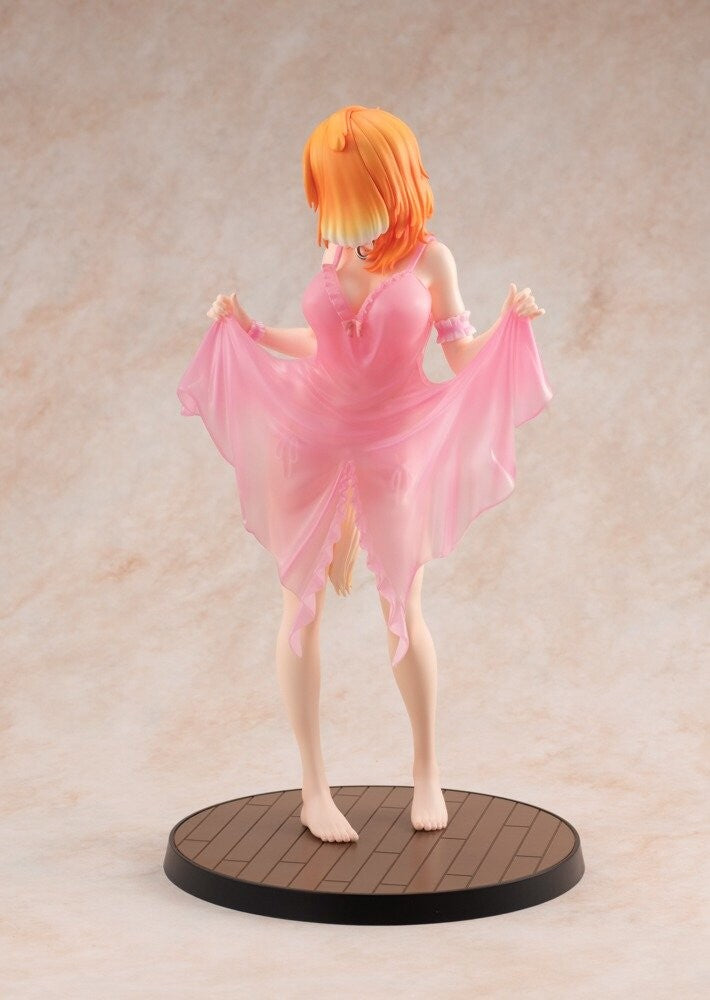 Indulge in the enchanting allure of Roxanne from "Isekai Meikyuu de Harem o" with this stunning 1/7 scale figure by Kadokawa and Wing. This figure captures Roxanne in a delicate and sensual pose, draped in a sheer pink garment that elegantly reveals her beautiful form. The translucent fabric and subtle details in her expression and posture convey a sense of both shyness and confidence. Standing barefoot on a textured base, this figure of Roxanne is a captivating addition for any fan, exuding a perfect blend of elegance and allure.