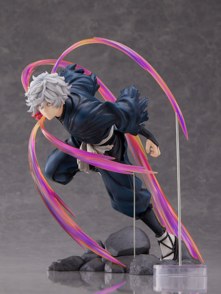 Unleash the fury with the stunning Gabimaru figure from Jigoku Raku, expertly crafted by FuRyu and Mappa. Standing at 1/7 scale, this dynamic piece captures Gabimaru in a fierce mid-action pose, surrounded by swirling, vibrant pink energy effects. His intense expression, with steely eyes and meticulously sculpted silver hair, conveys the determination of a true warrior. The dark, flowing robe adds a sense of movement and depth, contrasting sharply against the rocky base. This figure is a perfect blend of artistry and intensity, making it a must-have for fans seeking to bring the exhilarating spirit of Jigoku Raku into their collection.