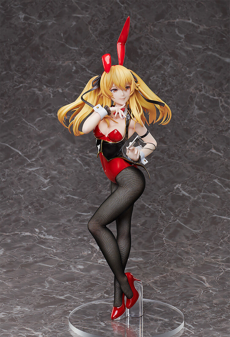 Elevate your collection with the stunning 1/4 scale Bunny Ver. figure of Saotome Mary from Kakegurui×× by FREEing. Mary is captured in a captivating pose, her confident smile and playful expression embodying her daring personality. Dressed in a sleek red and black bunny outfit, complete with fishnet stockings and glossy red high heels, she exudes both elegance and allure. Her long, flowing blonde hair and red bunny ears add a dynamic flair, while the detailed sculpting and paintwork highlight every curve and fold. This figure is a showstopper, perfect for fans of Kakegurui looking to add a touch of glamour and excitement to their display.