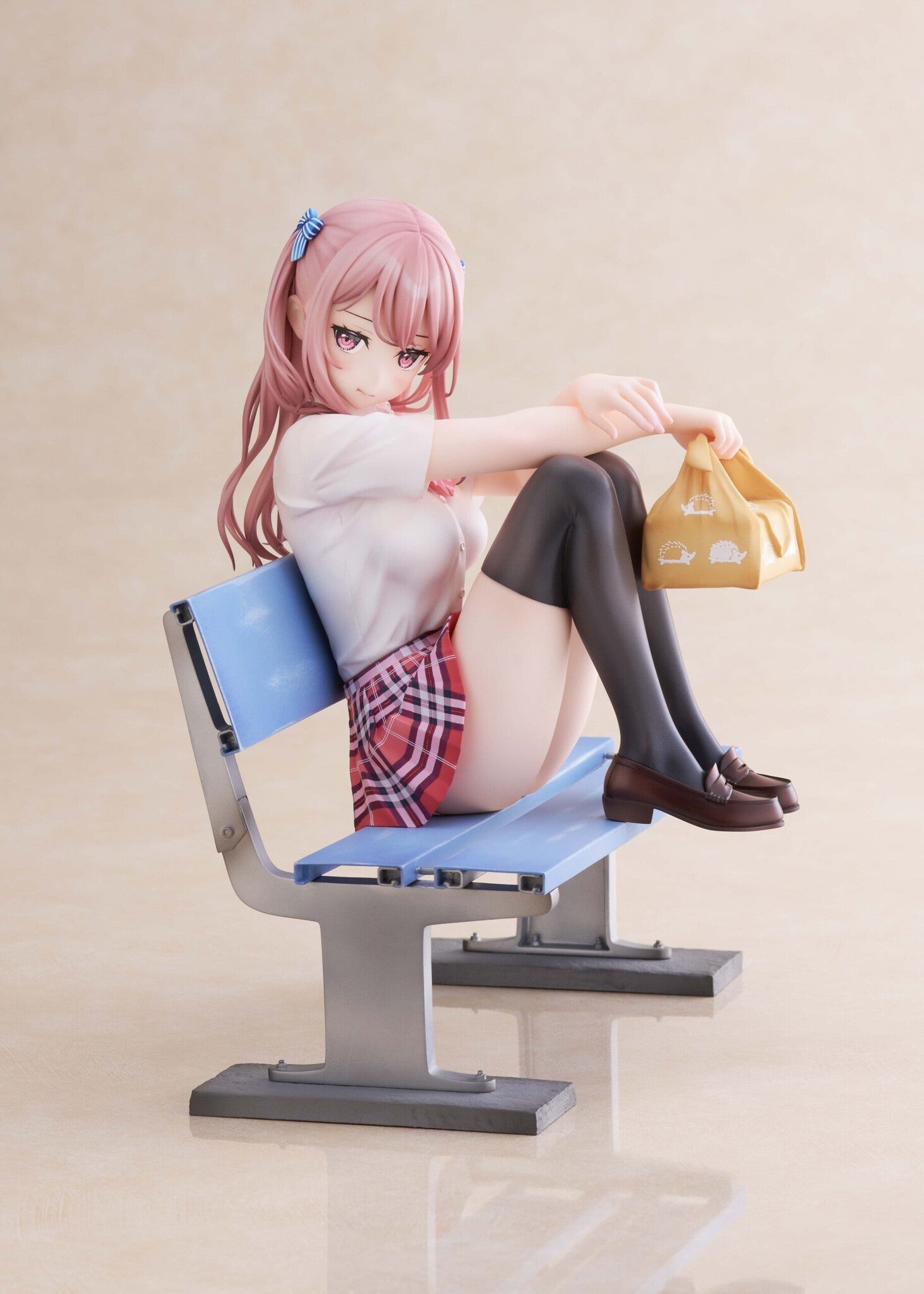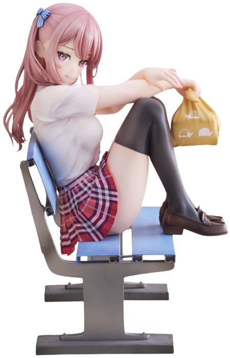 The Kurumi Golden Head figure from "More Check!" by Alice Glint and Thousand captures a serene moment of school life. Sitting gracefully on a school bench, Kurumi’s pose exudes a casual charm, with her legs crossed and a delicate smile on her face. The figure highlights her stylish ensemble – a neatly tied blue ribbon in her hair, a crisp white blouse, and a vibrant plaid skirt. The attention to detail is exquisite, from the soft folds of her clothing to the playful look in her eyes. This 1/6 scale figure is perfect for fans who appreciate the everyday beauty of school days, bringing Kurumi’s warm and inviting presence to any collection.