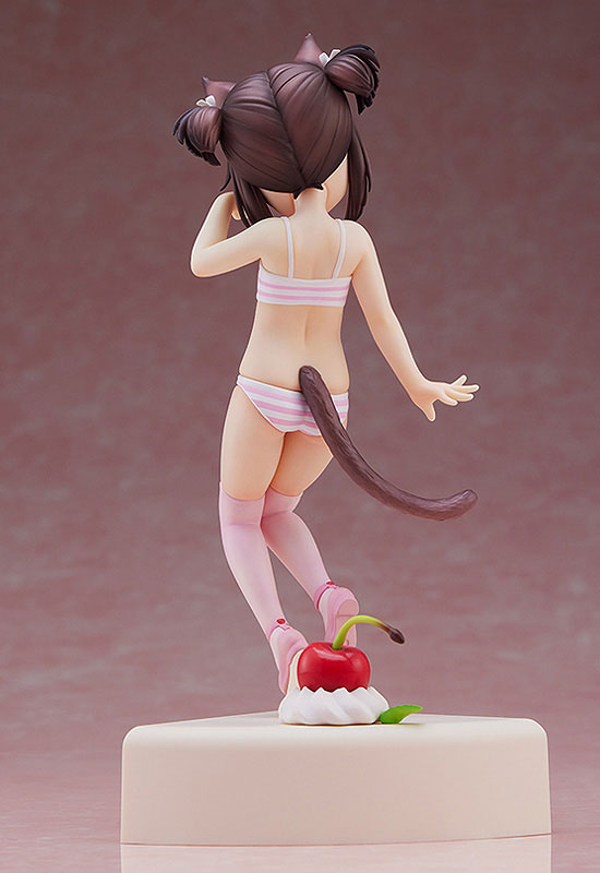 Introducing Chocola from Nekopara in her adorable 1/7 scale Pretty Kitty Style, Pastel Sweet version by PLUM. This figure captures Chocola’s lively and playful nature, dressed in a charming pastel pink maid outfit adorned with frills and a cute apron. Her expressive eyes and joyful smile bring her vibrant personality to life. The attention to detail is evident in her meticulously sculpted cat ears, tail, and the delightful cherry accessory at her feet. Her pose, with one hand raised in a playful gesture, adds a dynamic touch to the figure. Perfect for any Nekopara fan, this Chocola figure is a sweet and delightful addition to your collection.