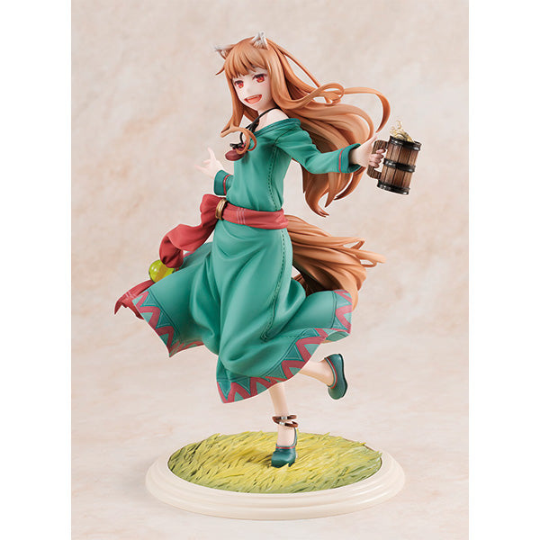 Celebrate the harvest season with this stunning 1/7 scale figure of Holo, the wise wolf from "Spice and Wolf." Dressed in her signature green dress adorned with a red sash, Holo exudes joy and vitality. Her playful expression and dynamic pose capture her carefree spirit, as her long, flowing hair and fox ears add a touch of whimsy. The intricate details, from the delicate folds of her dress to the grass-like base, showcase the craftsmanship and dedication put into this figure. Add this lively Holo to your collection and let her charm brighten your day.