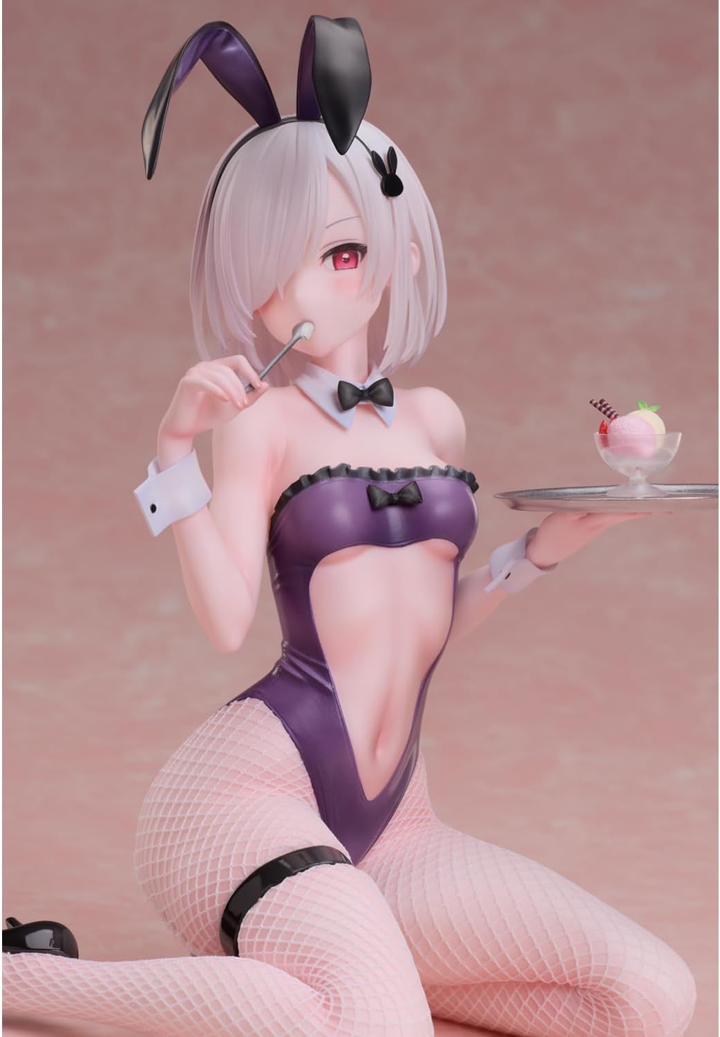Meet the enchantingly alluring Iro Bunny! This delightful figure radiates a playful yet tantalizing vibe, showcasing a stunning costume that hugs every curve, transforming her into the ultimate eye-catcher. With a sultry pose, she elegantly balances a tray with a delightful dessert, making her not just a feast for the eyes but also a whimsical bit of cheeky fun. The intricate details—from her fishnet stockings to her playful bunny ears—make this figure a striking centerpiece for any collection. Bring home Iro Bunny and let her sprinkle a little playfulness into your life!