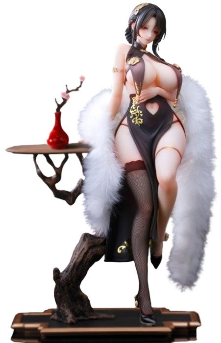 Ever wonder what elegance truly looks like? Meet Feng Lai Yi, a stunning figure that embodies allure and sophistication! Draped in a luxurious black gown adorned with exquisite golden elements, she exudes an enchanting charm. Her delicately posed figure rests effortlessly on a beautifully crafted wooden display, complete with a tasteful floral arrangement that adds a touch of nature's beauty. The intricate details, from the texture of her outfit to the exquisite fur trim, make this piece a striking centerpiece. Each glance invites admiration and awe, making Feng Lai Yi a must-have for collectors looking to add a dash of glamour to their display!