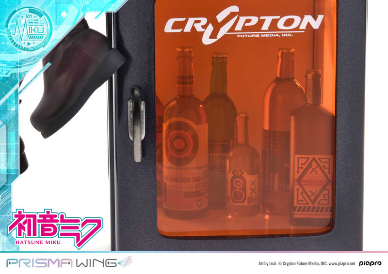 Celebrate the charm of Hatsune Miku with this exquisite 1/7 scale Prisma Wing figure by Prime 1 Studio based on an illustration by artist "lack". Captured in a serene, casual pose, Miku sits gracefully atop a mini fridge, her long twin-tails flowing down elegantly. Her outfit, featuring a stylish turquoise jacket, patterned skirt, and cozy scarf, exudes a warm and approachable vibe. The figure's intricate detailing, from the textures on her clothing to the translucent effect on her hair, showcases the high level of craftsmanship. The mini fridge, adorned with the Crypton logo, adds a modern touch, making this figure a delightful blend of everyday life and Miku's iconic style. This piece is a must-have for any Hatsune Miku fan looking to add a touch of her endearing personality to their collection.