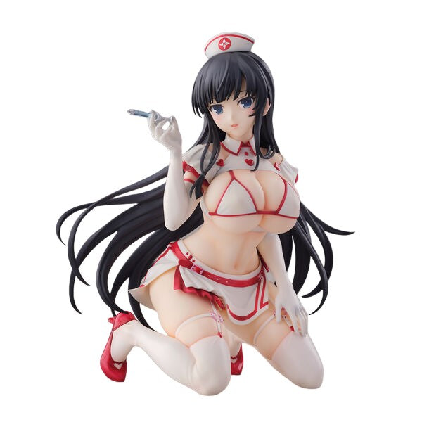 Meet Ikaruga from "Shinovi Master Senran Kagura: New Link" in her jaw-dropping Sexy Nurse Ver. figure! This stunning 1/4 scale representation captures her in a playful pose, elegantly kneeling with a teasing smile and a syringe in hand. Her eye-catching nurse outfit, adorned with striking red accents, highlights her curves while maintaining a cheeky charm. Flowing black hair cascades around her, adding to the allure, while the intricate detailing on her outfit showcases the craftsmanship that hobbyists crave. This figure masterfully blends seduction with an adorable touch, making Ikaruga a captivating addition to any collection. Will you let her heal your display with her undeniable charm?