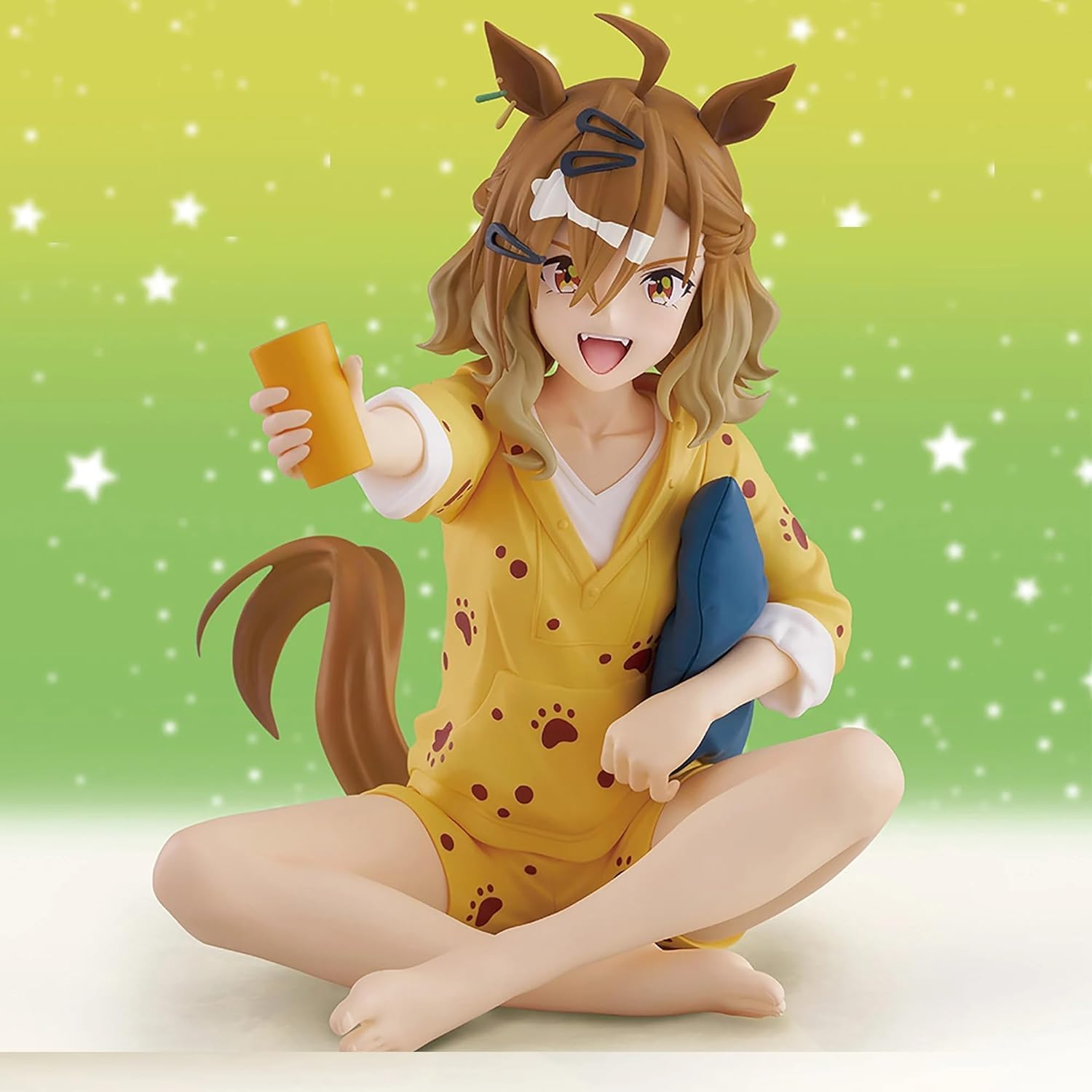Here strides Jungle Pocket, the embodiment of cozy vibes! Draped in her playful yellow pajama set adorned with delightful paw prints, this figure captures her delightful charm and cheeky spirit. With a jubilant smile and a playful pose, she’s ready for a fun-filled day of relaxation, clutching a plush pillow. The stunning detailing in her flowing hair and those adorable horse ears truly bring this character to life! This figure is a delightful invitation to bask in the joy of “Umamusume: Pretty Derby”, making it a must-have for fans and collectors alike!