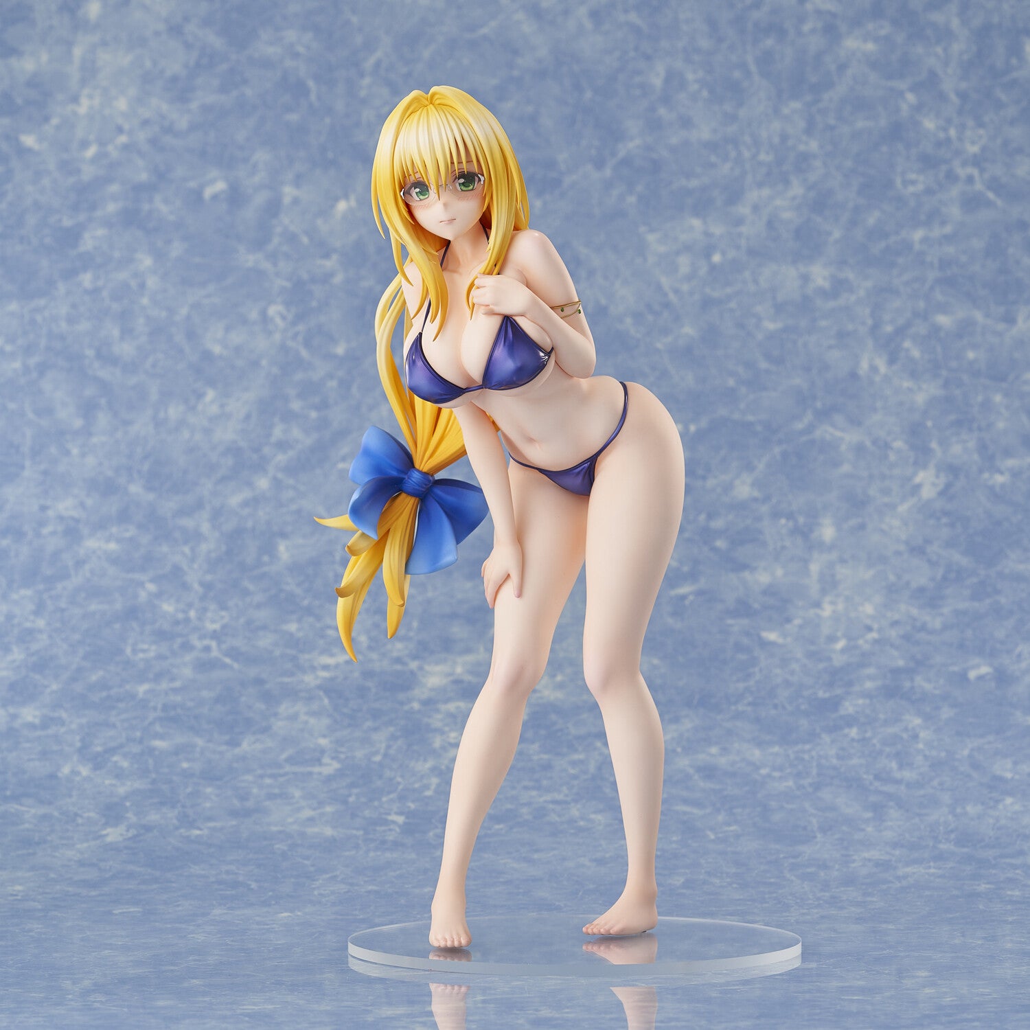 Dive into a world of allure with the mesmerizing 1/4 scale figure of Tearju Lunatique from "To LOVEru Darkness"! This exquisite piece captures Tearju in a stunning bikini that perfectly complements her playful persona. With her long, flowing golden hair casually swept to one side and adorned with a charming blue bow, she radiates both elegance and mischief. Her captivating gaze, enhanced by her striking blue eyes, draws you in, while her playful pose adds a flirty touch that’s impossible to resist. The meticulous detailing on her attire showcases every curve, making this figure a delightful addition to any collection. Are you ready to let Tearju brighten up your space with her enchanting charm?
