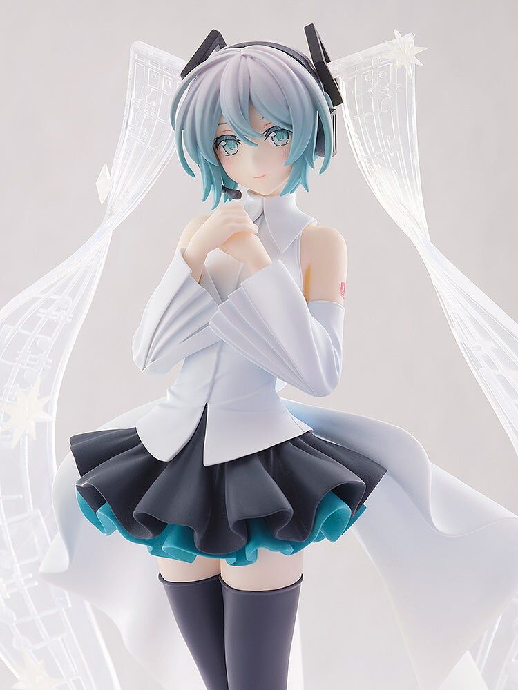Embrace the celestial beauty of Hatsune Miku with this exquisite Pop Up Parade figure in her "Little Missing Stars" version by Good Smile Company. This enchanting figure captures Miku in a graceful pose, her delicate hands held close to her heart. Her ethereal outfit features a flowing white top with wide sleeves, paired with a black and teal skirt that adds a touch of whimsy. Miku's iconic teal hair cascades down in translucent twin tails adorned with starry details, evoking the night sky. Her gentle expression and intricate accessories complete this dreamy rendition, making it a must-have for fans of the virtual diva.