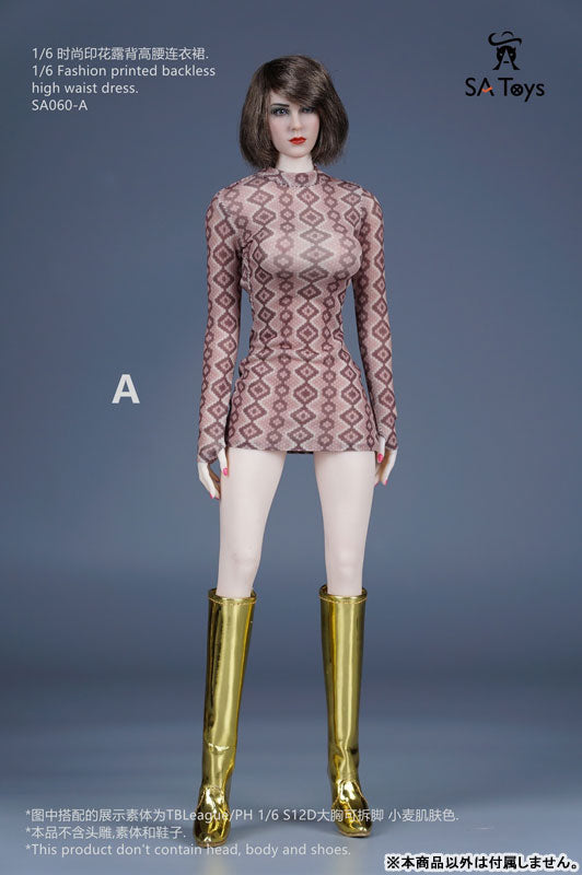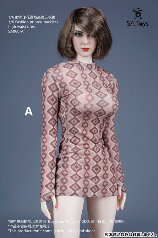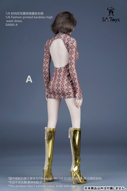 1/6 Fashion Print Backless High Waist Dress A (DOLL ACCESSORY)