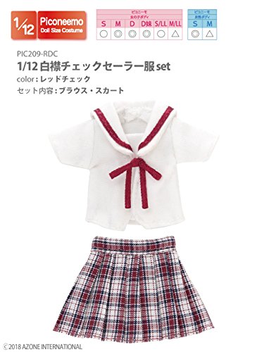 Doll Clothes - Picconeemo Costume - White Collar Checks Sailor Uniform Set - 1/12 - Red Checks (Azone)