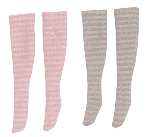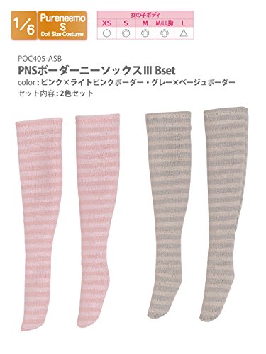 Doll Clothes - Pureneemo Original Costume - PureNeemo S Size Costume - Border Knee Socks III B Set - 1/6 - Pink x Light Pink Border & Gray x Beige Border (Azone)