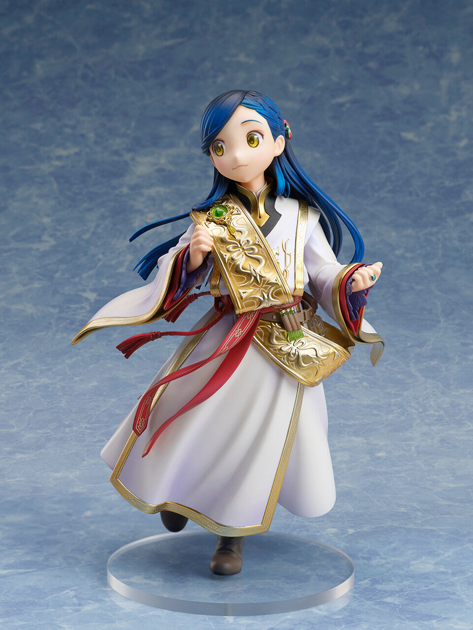Who says bookworms can’t be enchanting? Presenting Myne from "Honzuki no Gekokujou: Shisho ni Naru Tame ni wa Shudan wo Erandeiraremasen," this delightful 1/7 scale figure captures her whimsical charm flawlessly! Dressed in an ethereal white robe adorned with intricate golden details, Myne twirls gracefully, embodying the spirit of adventure and knowledge she so passionately pursues. Her flowing blue hair dances around her, beautifully framing her large, expressive eyes filled with curiosity and determination. The meticulous craftsmanship of her attire, complete with a richly detailed sash and delicate embellishments, adds layers of storytelling to the piece. Myne’s radiant presence is sure to light up your collection, bringing a touch of magic from her beloved world!