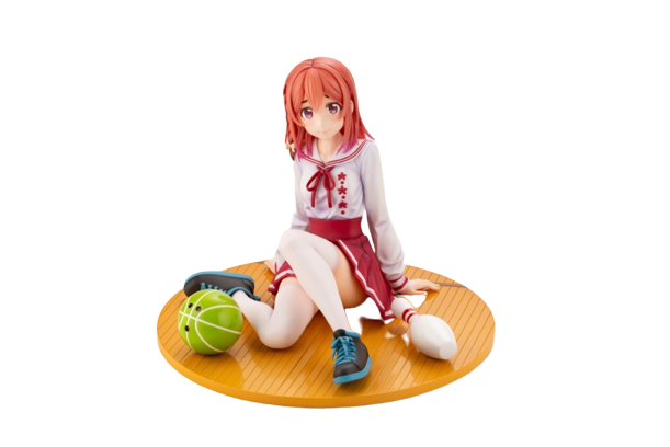 Celebrate the charming innocence of Sakurasawa Sumi from "Kanojo, Okarishimasu" with this delightful 1/7 scale figure by Kotobukiya. Captured in a serene moment, Sumi sits gracefully on a wooden floor base, dressed in a cute and sporty school outfit. Her soft, pink hair frames her gentle expression, while her bright, inquisitive eyes convey her shy yet determined personality. The figure includes lovely details, such as the neatly tied ribbon on her blouse and the sporty sneakers on her feet, along with a green exercise ball that adds a playful touch. This figure perfectly captures Sumi's endearing charm, making it a must-have addition for fans of the series.