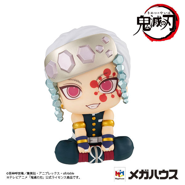 Embrace the flamboyant and charismatic Uzui Tengen from Kimetsu no Yaiba with this delightful Look Up figure by MegaHouse. Seated in a charming pose, Tengen's striking features are perfectly captured in chibi form. His vibrant pink eyes, white hair, and signature headband adorned with gemstones bring out his extravagant personality. The intricate details of his muscular arms, golden armbands, and the colorful markings on his face add to the figure's authenticity. With an oversized head and an engaging smile, this figure combines Tengen's flashy style with an irresistibly cute design. A must-have for fans of Demon Slayer, this figure brings Tengen's bold presence to life in an adorable, collectible form.