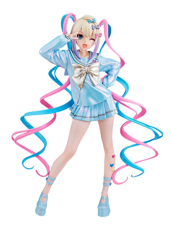 Brighten up your collection with the delightful Chouzetsu Saikawa Tenshi-chan Pop Up Parade figure from "Needy Girl Overdose," re-released by Good Smile Company. This vibrant figure captures Tenshi-chan's energetic and playful spirit, making her a standout addition to any display. Tenshi-chan is depicted in a dynamic pose, wearing a glossy light blue outfit adorned with a large silver bow. Her long, flowing twin-tails, highlighted with blue and pink, add a whimsical touch, while her expressive winking face radiates joy and excitement. The heart and star decals on her leg further enhance her cute and lively appearance.