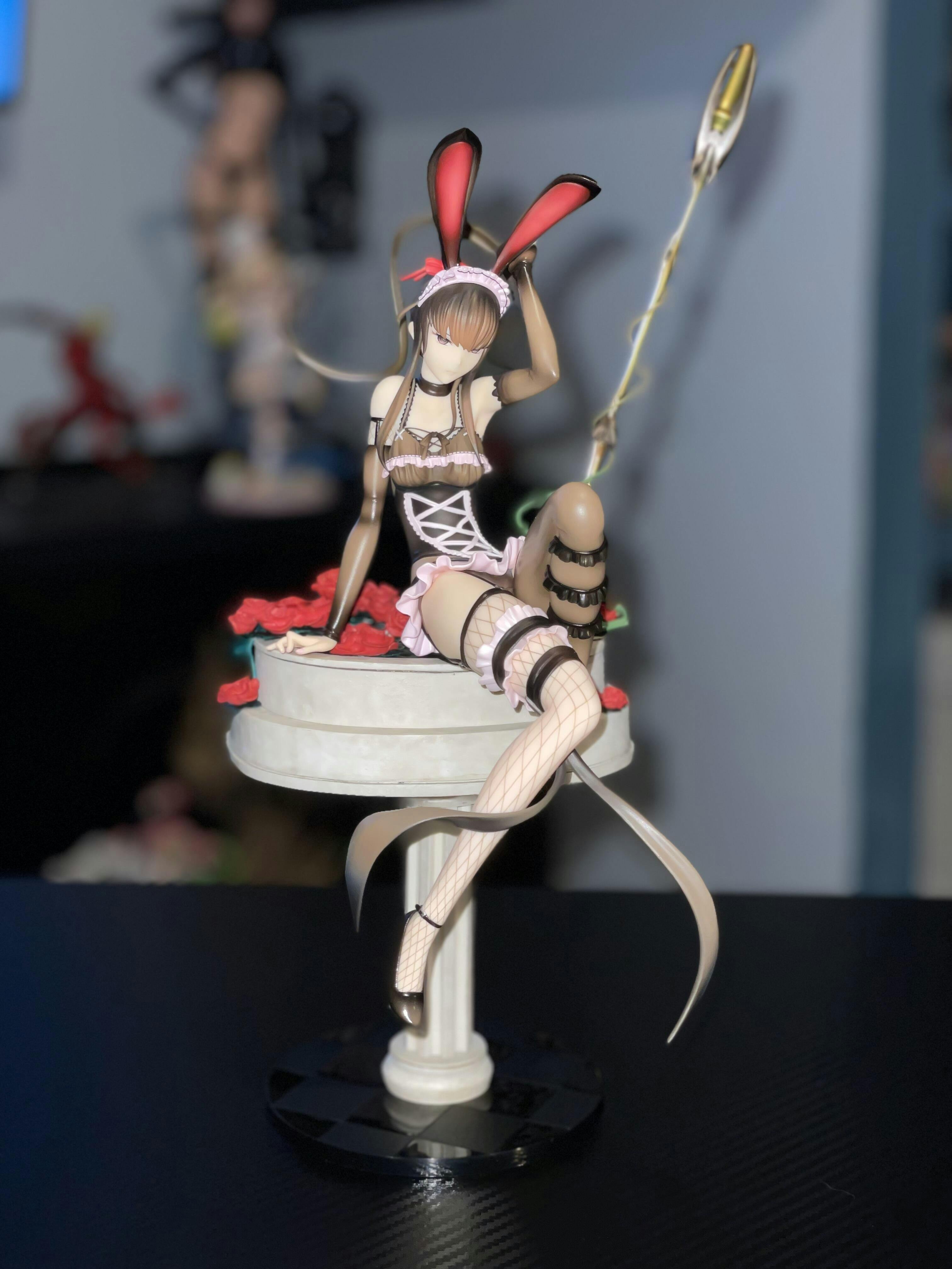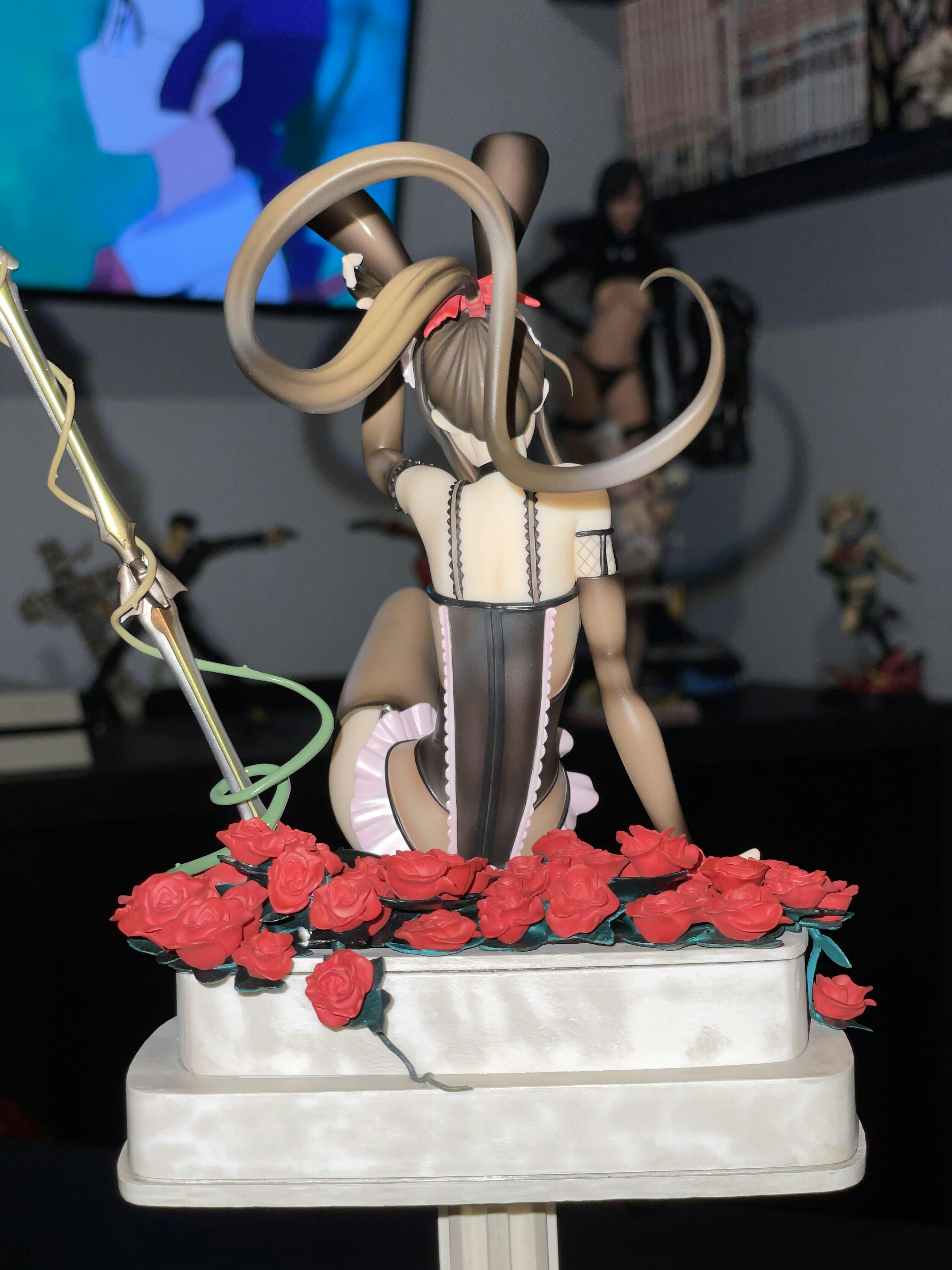 Introducing the exquisite Narberal Gamma 1/8 scale figure from "Overlord II" by Alter, based on the so-bin version and set for a 2024 re-release! This figure captures Narberal's refined elegance and strength in a unique bunny maid outfit. Perched gracefully on a pedestal surrounded by blooming red roses, Narberal's poised demeanor and intricate attire are showcased in stunning detail. Her bunny ears and laced corset add a touch of charm, while the stockings and delicate accessories enhance her sophisticated look. The golden staff she holds reflects her combat readiness, adding a dynamic element to the figure. Perfect for "Overlord" fans, this Narberal Gamma figure is a must-have, blending grace and power beautifully.