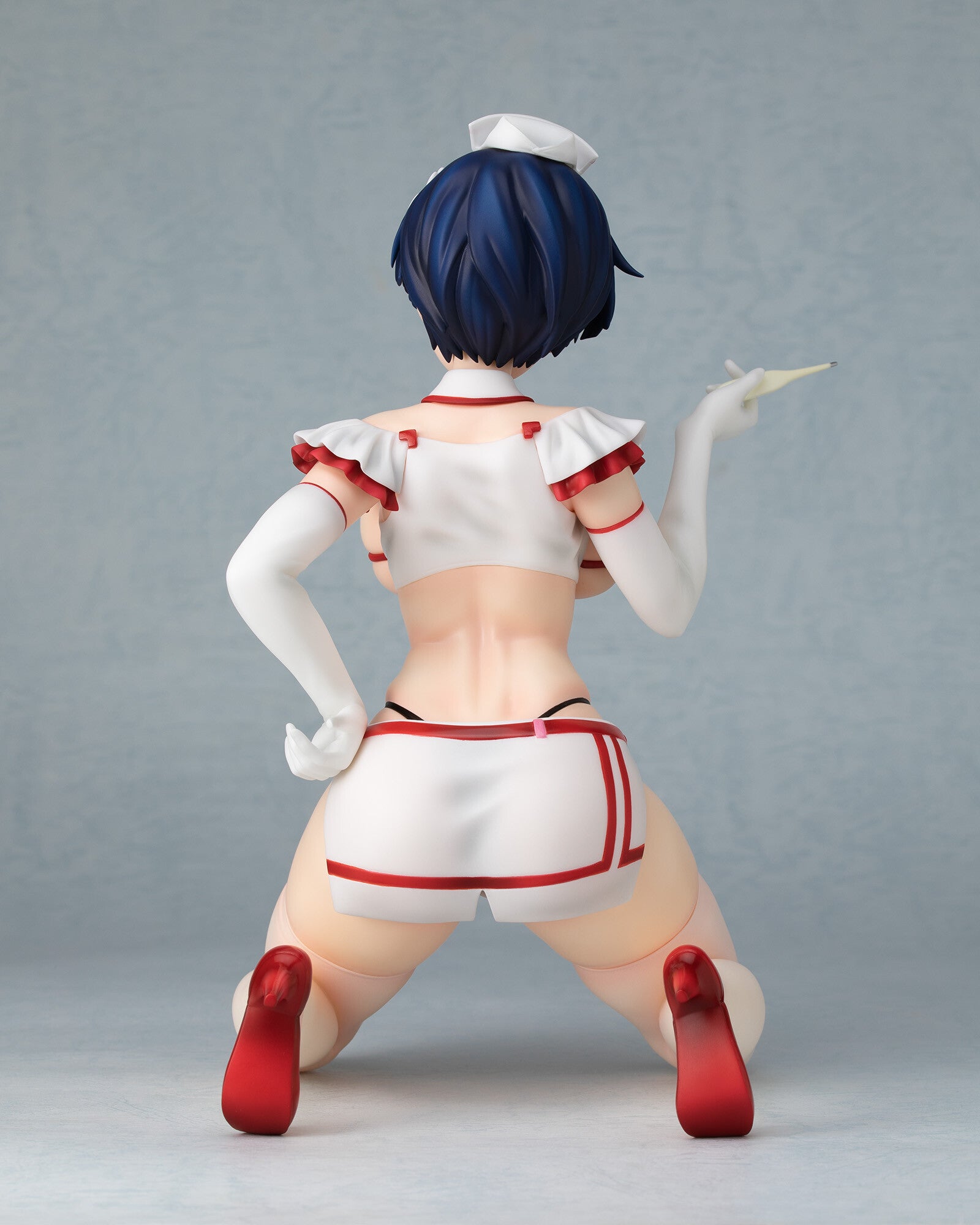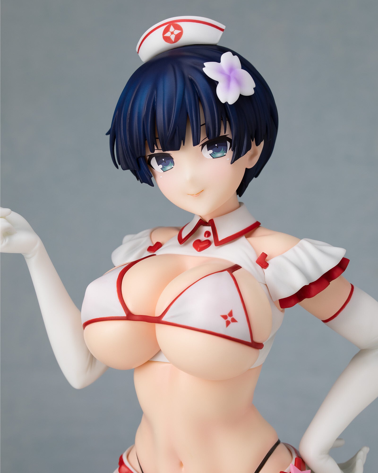 Indulge in the bold and captivating allure of Yozakura from "Shinovi Master Senran Kagura: New Link" with this exquisite 1/4 scale figure by Hobby Stock and Wing. This Sexy Nurse Version showcases Yozakura in a daring nurse outfit, designed with a striking combination of white and red that highlights her voluptuous figure. Her confident pose, holding a syringe with a playful smirk, adds a touch of mischievous charm. The figure captures every detail, from her short dark blue hair adorned with a delicate flower accessory to the intricate design of her nurse cap and gloves. This stunning piece is a must-have for fans, blending seductive elegance with Yozakura's strong and playful personality.